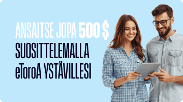 Saat enemmän irti rahoistasi eToron saldokoron avulla! Aloita korkomaksujen vastaanottaminen – jopa 3.55 % vuosittain – suoraan tilillesi ilman sitoutumista.