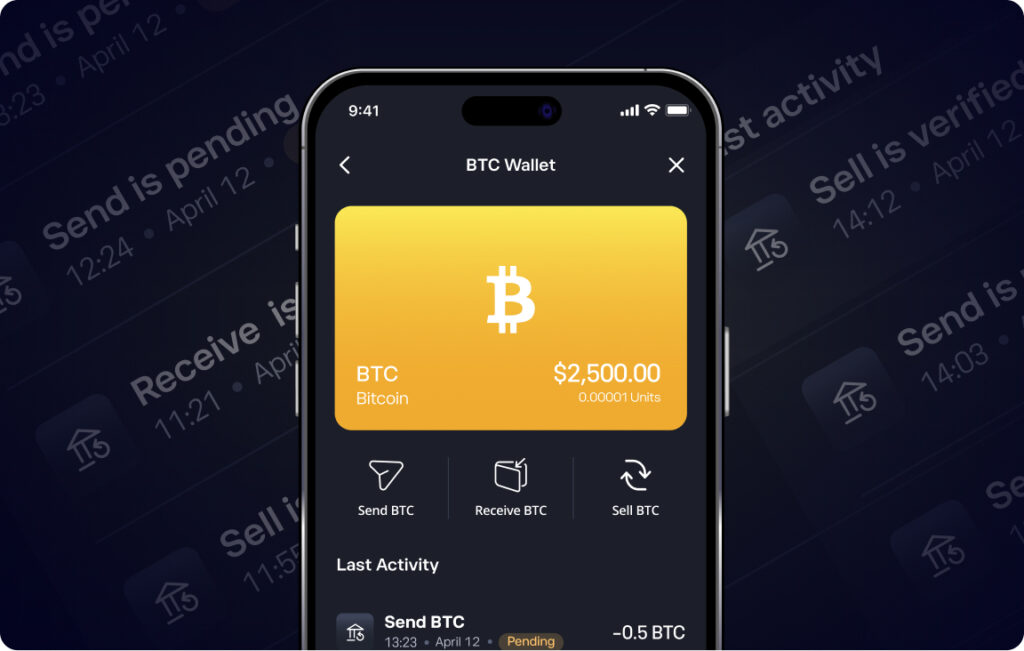Keep your crypto in a secure, regulated wallet built right into your account. Whether storing or transferring, you are protected by high-grade encryption, strict compliance, and transparent custody – giving you full control and peace of mind.