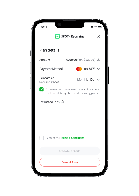 Select the relevant plan, tap “Edit,” and choose “Cancel.” - What exchange price is used for recurring investments?