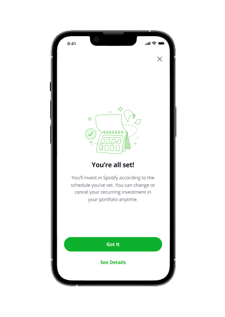You can also access your plans from your Recurring investment Portfolio. - Choose your monthly investment amount and scheduled day.