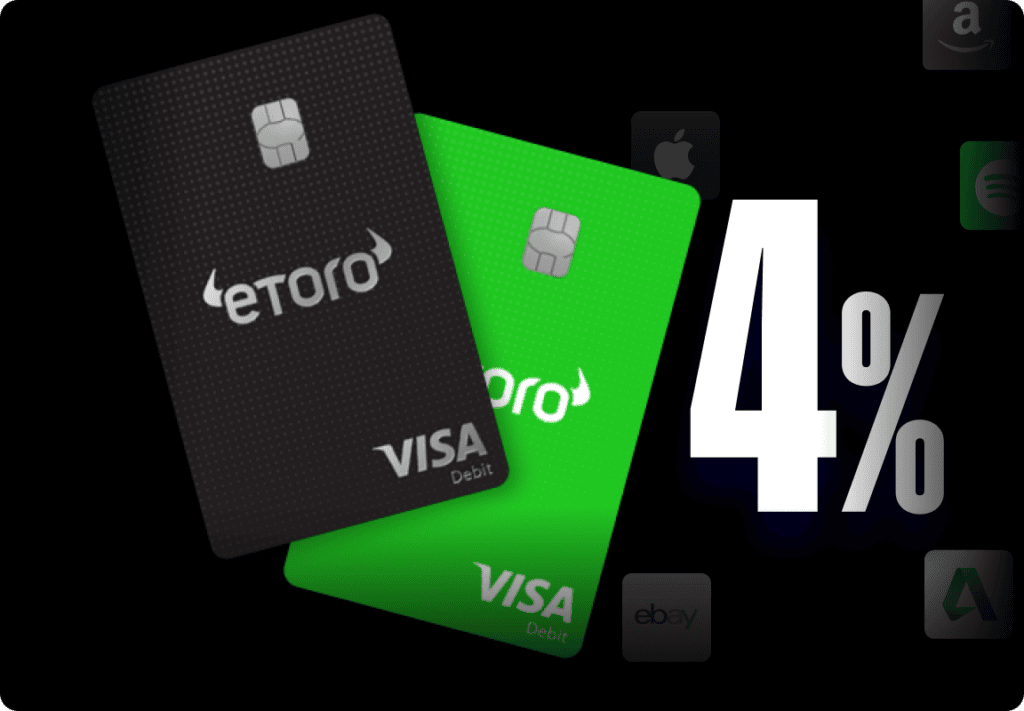 Turn everyday spending into long-term investing with the eToro Visa debit card. Whether you’re grabbing coffee or booking a flight, you’ll earn up to 4% in stocks on your purchases.